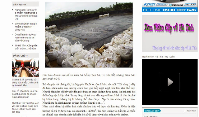 Bài báo được trang Hà Tĩnh 24h (hatinh24h.org.vn) đăng tại lại tại đây: Hà Tĩnh: Xử lý ô nhiễm môi trường sai quy trình, dân hoang mang kêu cứu